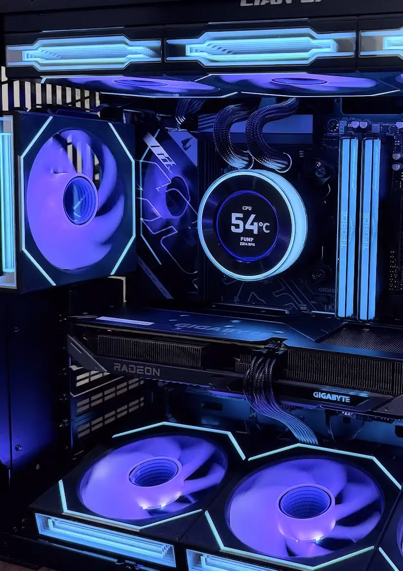 Las CPU modernas son muy potentes. Piensa en los Intel Core i9 o los AMD Ryzen serie 9. Alcanzan velocidades de reloj superiores a los 5 GHz y soportan cargas de trabajo masivas. Pero esa potencia genera un calor intenso. Los refrigeradores por aire a menudo tienen dificultades para mantener el ritmo. La refrigeración líquida se convierte en la mejor opción. En un ordenador Gaming PC la refrigeración líquida es mucho más eficiente que la refrigeración por aire. Montamos kits compactos AIO (All In One) de refrigeración líquida. Ofrece un mejor rendimiento para equipos de gaming o configuraciones overclockeadas.
